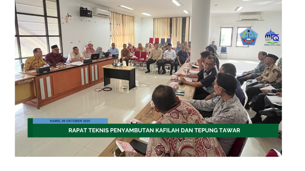 Pidie Jaya, 9 Oktober 2025 — Dalam rangka menyukseskan penyelenggaraan Musabaqah Tilawatil Qur’an (MTQ) Aceh ke-XXXVII, Pemerintah Kabupaten Pidie Jaya menggelar rapat teknis persiapan penyambutan kafilah dan prosesi adat tepung tawar. Rapat ini berlangsung di Aula Lantai 3 Kantor Bupati Pidie Jaya, Kamis (9/10), dan dipimpin langsung oleh Asisten Pemerintahan dan Keistimewaan Sekretariat Daerah, Said Abdullah.