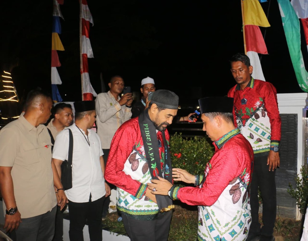Kehadiran rombongan disambut langsung oleh Bupati Pidie Jaya, H. Sibral Malasyi, MA, S.Sos, ME, bersama Wakil Bupati, Hasan Basri, ST, MM, serta jajaran Forkopimda dan tokoh masyarakat setempat. Dalam tradisi adat Aceh yang sarat makna, penyambutan dilakukan dengan prosesi peusijuek — simbol doa, keselamatan, dan keberkahan bagi para tamu kehormatan.
