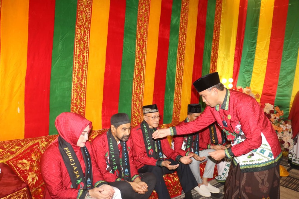 Wali Nanggroe dan Gubernur Aceh Disambut dengan Peusijuek di Pendopo Bupati Pidie Jaya Menjelang Pembukaan MTQ Aceh ke-37
