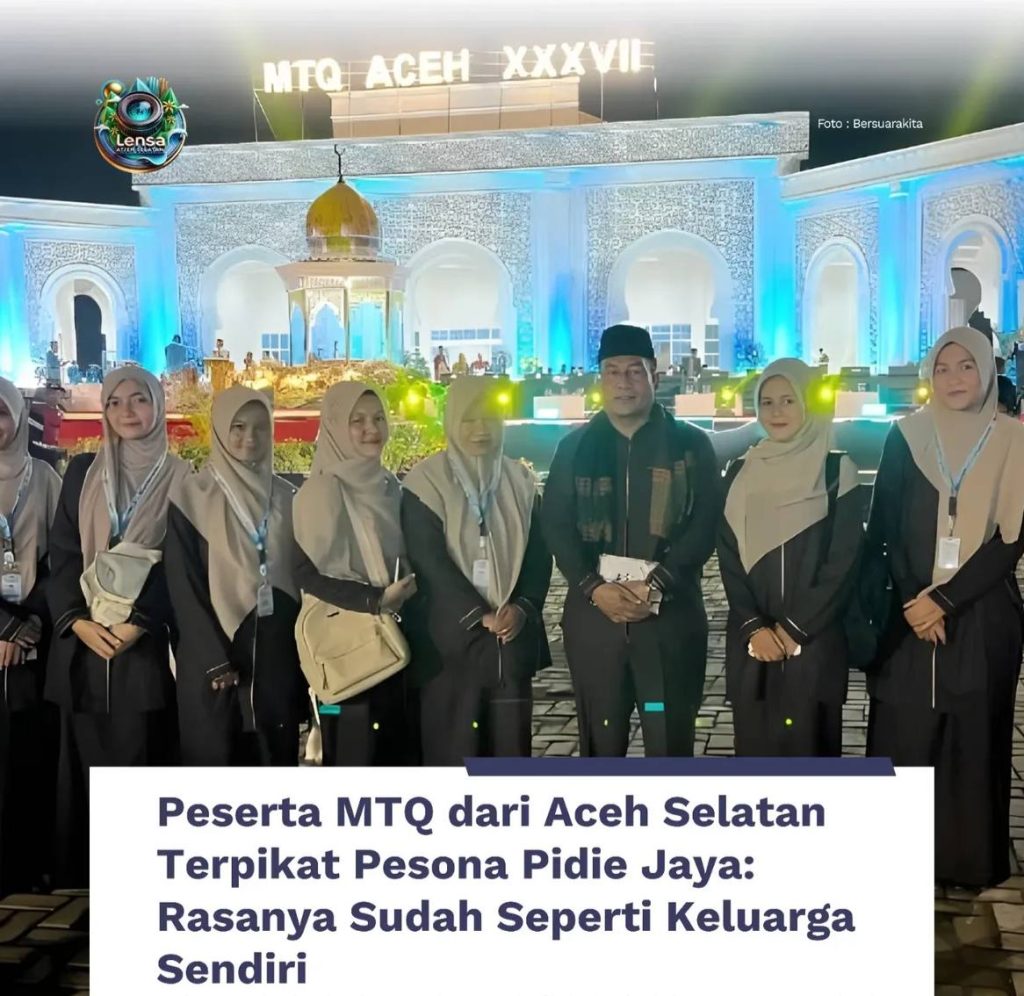 “Bukan hanya semangat berlomba yang kami bawa, tapi juga rasa kagum atas sambutan hangat dan pelayanan yang kami terima selama berada di Pidie Jaya,” ungkap salah satu perwakilan kafilah Aceh Selatan sebagaimana dikutip dari akun Instagram @lensaatjehselatan.